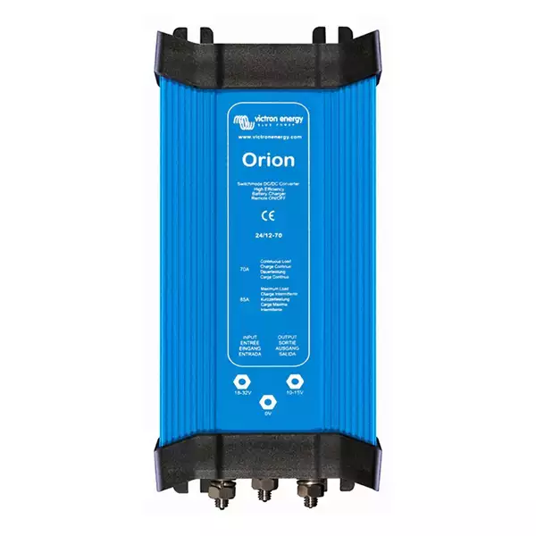 L'abaisseur de tension 24V-12V - 70A de VICTRON ENERGY vous permet de transformer une tension de 24 Volts DC (courant continu) en 12 Volts DC.