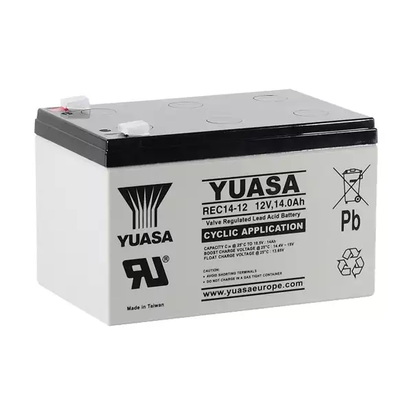 La batterie industrielle de cyclage YUASA REC14-12- 12V 14Ah est idéale pour le quad électrique, le fauteuil pour personne à mobilité réduite, la voiture pour enfants, la trottinette électrique…