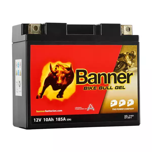 La batterie Moto Banner GT12B-BS à la technologie GEL offrant une grande puissance de démaragge est parfaitement adaptée pour les motos de tourisme et motos-cross, les quads, jets-skis ainsi que les tondeuses autoportées, un faible taux d'auto décharge, une bonne résistance au cyclage profond, un très faible dégagement d'hydrogène, et une robustesse importante.La batterie qui ne nécessite aucun entretien peut être montée en position latérale. Comme pour toutes les batteries à usage saisonnier, elle nécessite une charge régulière.