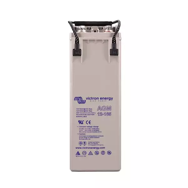 La batterie Plomb AGM Telecom 12V - 165Ah de Victron est une nouvelle batterie AGM offrant une très bonne performance de profondeur de décharge à 100% grâce aux derniers développements en électrochimie. Elle est conçue pour des applications de télécommunications et est idéale à bord de véhicules dont l'espace au sol ou l'accès est limité, comme les bateaux par exemple. Pour faciliter son installation, la batterie 12V-165Ah de Victron est pré-sertie de cosses plates M8.