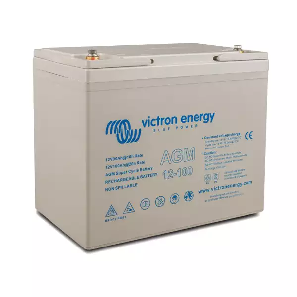 La batterie Plomb Super Cycle AGM 12V - 100Ah de Victron est une nouvelle batterie AGM offrant une très bonne performance de profondeur de décharge à 100% grâce aux derniers développements en électrochimie. Elle est idéale pour un besoin de décharge de courant élevé et offre une durée de vie plus longue qu'une batterie AGM standard. Plus petite et plus légère que cette dernière, elle présente moins de risques de sulfatation en cas de décharge poussée. Pour faciliter son installation, la batterie12V-100Ah super cycle AGM de Victron est pré-sertie de cosses plates M5.