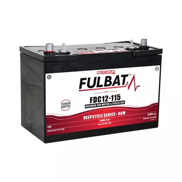 La batterie Traction Plomb-Carbon FDC12-115 - 12V 115Ah K20 est spécialement conçue pour les applications de traction nécessitant des décharges profondes et fréquentes telles que les nacelles et plateformes élevatrices, les autolaveuses, les voiturettes de golf ou le véhicules de loisirs (caravaning, bateaux..). Elle offre une durée de vie maximale avec une grande résistance aux cycles grâce à ses plaques épaisses et ses grilles renforcées. Elle est étanche et sans entretien grâce à sa technologie AGM, l'ajout de carbone quant à lui permet de hautes performances pour une utilisation cyclique optimale.