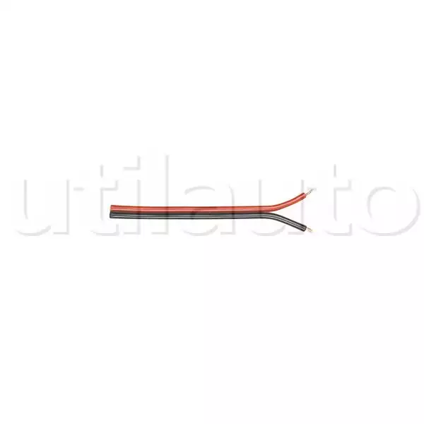 Le câble d'alimentation électrique souple est composé de deux fils conducteurs en cuivre de 0,50 mm² isolés d'une gaine rouge et d'une gaine noire.