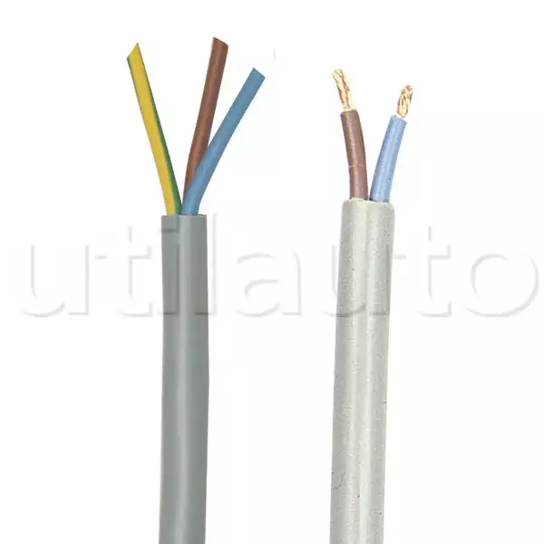 Le câble d'alimentation électrique souple est composé de deux fils conducteurs en cuivre de 4 mm² entourés d'une gaine en PVC grise.