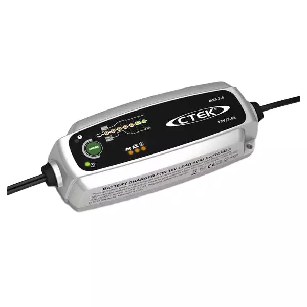 Le chargeur Plomb CTEK 12V 3,8A - MXS3,8. est le chargeur haut de gamme pour les batteries de motos, quads, tondeuses, campings-cars, bateaux ou autos. Il dispose d'une fonction de désulfatage qui reconditionneLa batterie si elle est profondément déchargée. Une fois branché et le mode de charge sélectionné, vous n'aurez plus à vous en soucier (ce système breveté est appelé Connect and Forget (brancher et oublier)). Le chargeur MXS3,8. de CTEK est destiné aux batteries acide-plomb ouvert 12 V et AGM de 1,5 Ah à 85 Ah, et jusqu'à 130 Ah en charge d'entretien. Le chargeur protège l'électronique du véhicule, ne produit pas d'étincelles, d'inversion de polarités et de courts-circuits.