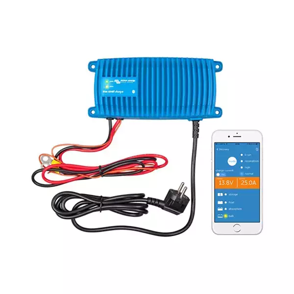 Le chargeur Plomb Blue Smart 24V 8A de VICTRON ENERGY est idéal pour charger les batteries de 24 volts d'une capacité supérieure ou égale à 40 Ah. Le chargeur Blue Smart est équipé d'un microprocesseur et d'une fonction adaptative gérant la durée de chaque étape de chargement (Bulk, Absorption, Float, Veille) et s'adaptant automatiquement à l'état initial de décharge de la batterie. Le chargeur vous permet de contrôler depuis votre tablette ou votre smartphone l'état de charge et le courant de votre batterie grâce à la fonction Bluetooth. Il est compatible avec les batteries AGM, Gel, Lithium. Il offre de plus une excellente résistance à l'eau et à la poussière avec un indice de protection élevé (IP de 65).