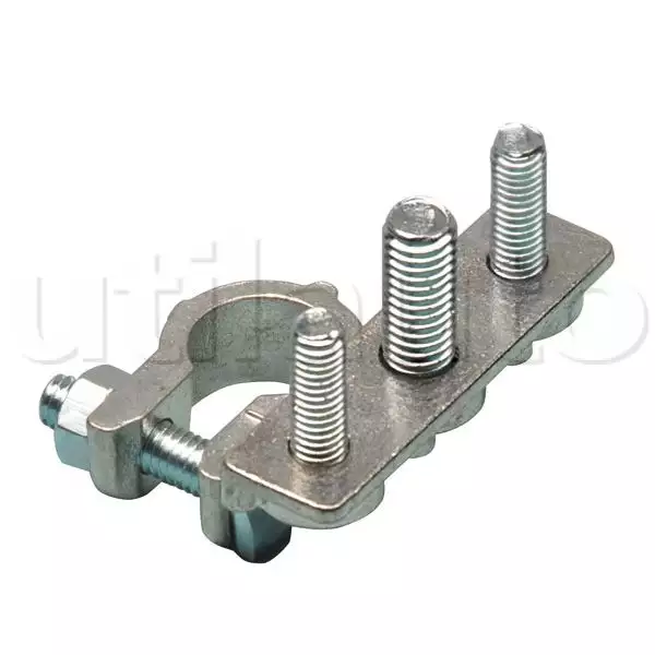 Cosse de batterie à 3 connexions (une tige M8 et deux tiges M6) pour alimentation puissance multiple.