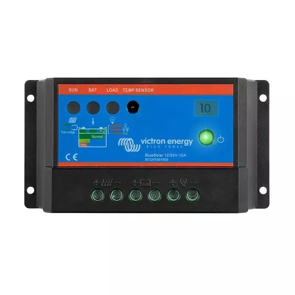 Le régulateur PWM-Light 12-24V 10A Victron IP20 est un contrôleur PWM à coût réduit. Il est muni d'une sonde de température interne, d'une protection contre la surintensité, d'une protection contre les courts-circuits et d'une protection contre la connexion en polarité inversée des panneaux solaires et/ou de la batterie. Son processus de charge de batterie est en trois étapes (bulk, absorption, float). Il permet également la déconnexion de la sortie en cas de charge de tension réduite.